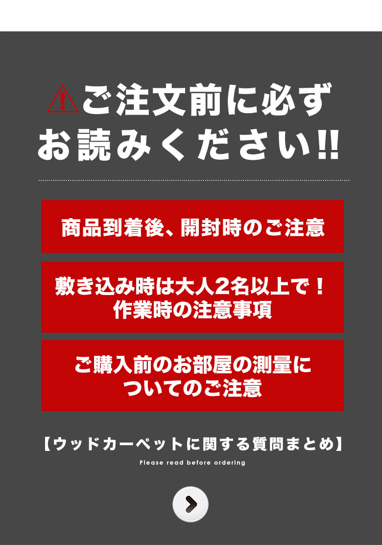 ※その他、ウッドカーペットに関する注意点について詳しくは、Q&Aを必ずご覧ください。