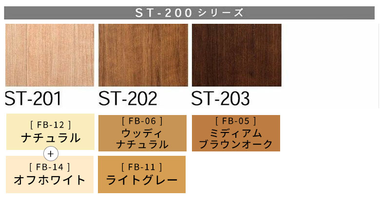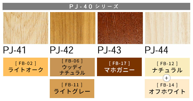 当社販売のウッドカーペットは品番下に記載しているかくれん棒のカラーで再現できます。+マークがついているものは対象色の調色が必要です。