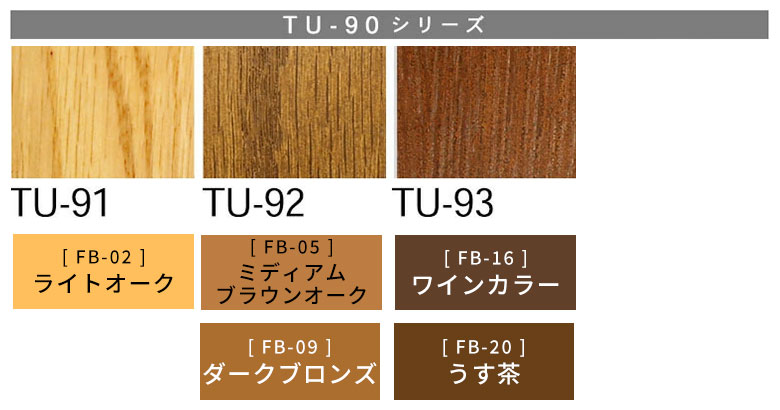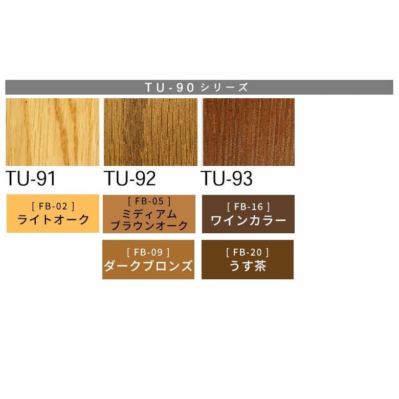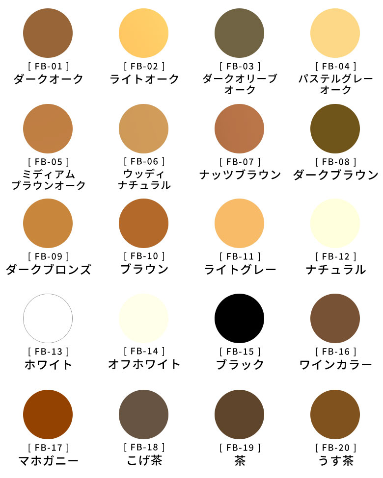 フローリングや木製家具に合わせやすいよう幅広いカラー展開をご用意しています。複数色を混ぜて 微妙な色合いの再現も可能です。