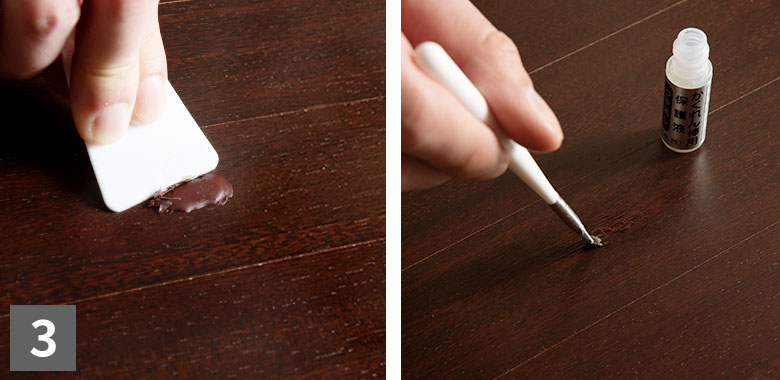 フローリングや木製家具の傷を補修します。 |