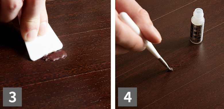 フローリングや木製家具の傷を補修します。 |