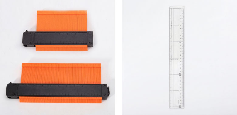 フロアタイルを敷きたい場所に型取りゲージを押し当てるだけ。 柱の出っ張りやドア枠の凹凸などの形をそのまま写し取り、 そのラインに沿ってタイルをカットすれば、隙間なくぴったりフィットします。 複雑な部分のカットも迷わず進められるので、フロアタイル施工の強い味方です。