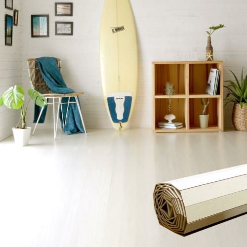 フローリングカーペットとは、布製のカーペットと同じように、敷くだけでフローリングにDIYリフォームできる木製カーペット。「ウッドカーペット」や「フローリングマット」とも呼ばれ、表面が木の物だけではなく、天然のコルクでできた「コルクカーペット」もあります。敷くだけで、畳のお部屋やじゅうたんのお部屋でも簡単にフローリングへ大変身。 フローリングカーペットの魅力は何といっても、リフォーム業者に頼むよりはるかに安いお値段で簡単にお部屋の模様替えができること。 重たい家具を置いてもへこんだりつぶれたりしない丈夫さも魅力です。 フローリングカーペットの裏地にはコットン布や不織布が貼られていますので、下の畳や床をキズ付ける心配もありません。