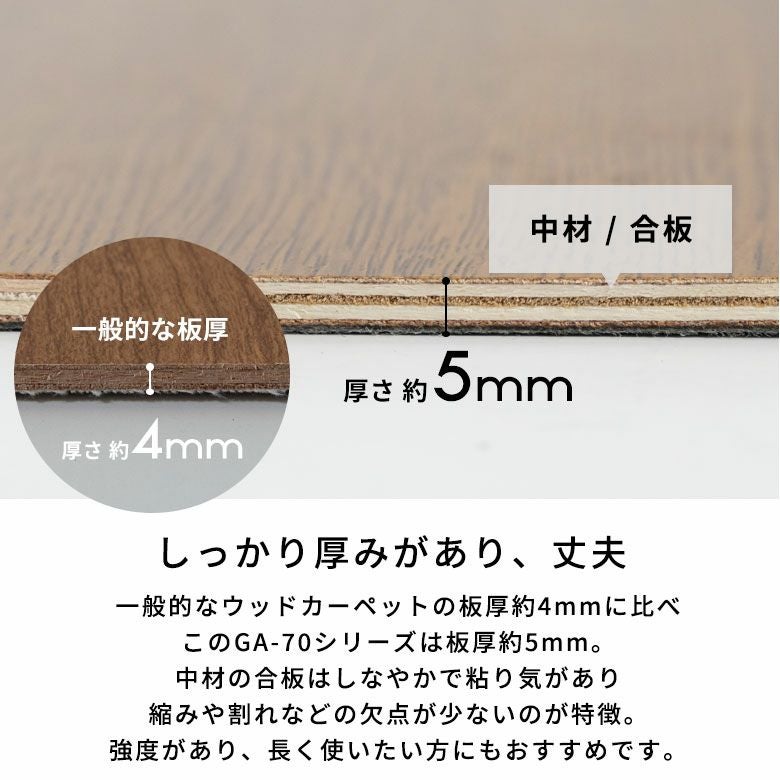ワイドな板幅で高級感のある江戸間6畳用ウッドカーペット 軽量 ウッドカーペット 江戸間 6畳用 約260×350cm GA-70シリーズ WIDE70 ワイド70 2梱包タイプ 板幅ワイド7cmタイプ 低ホルマリン フローリングカーペット フローリング材 フローリングマット フローリング リフォーム 6帖 和室 かーぺっと おしゃれ マット[GA-70-E60-2PCS]