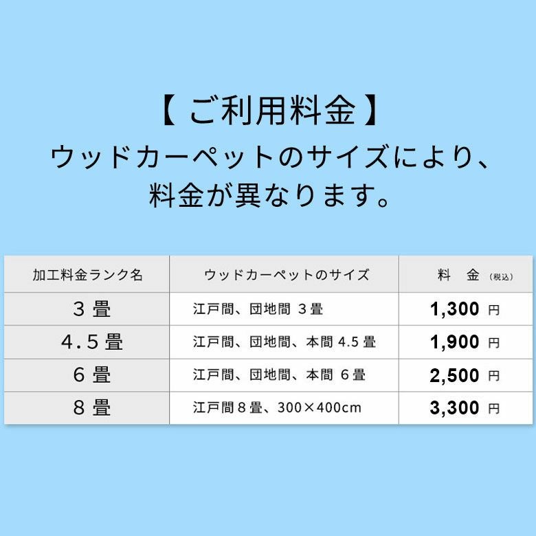 - ウッドカーペットの表面に、抗菌・消臭・防カビ・防汚効果を追加できるオプションサービスあり。