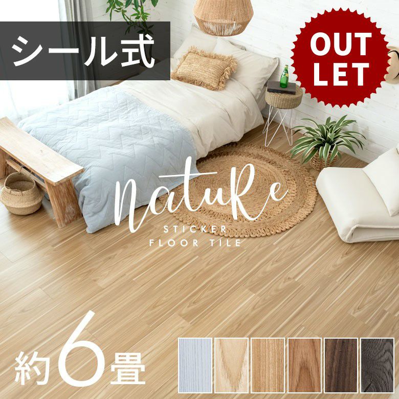 ☆アウトレット! 【訳あり】フロアタイル 接着剤付き 床材 貼るだけ シール 72枚 約 6畳 ブラウン ベージュ グレー ホワイト [out-84075]【 nature ナチュール 接着 粘着 木目調 フローリング タイル マット カーペット 床 シート フロア ナチュラル シック 接着剤不要 北欧 おしゃれ リゾート 】
