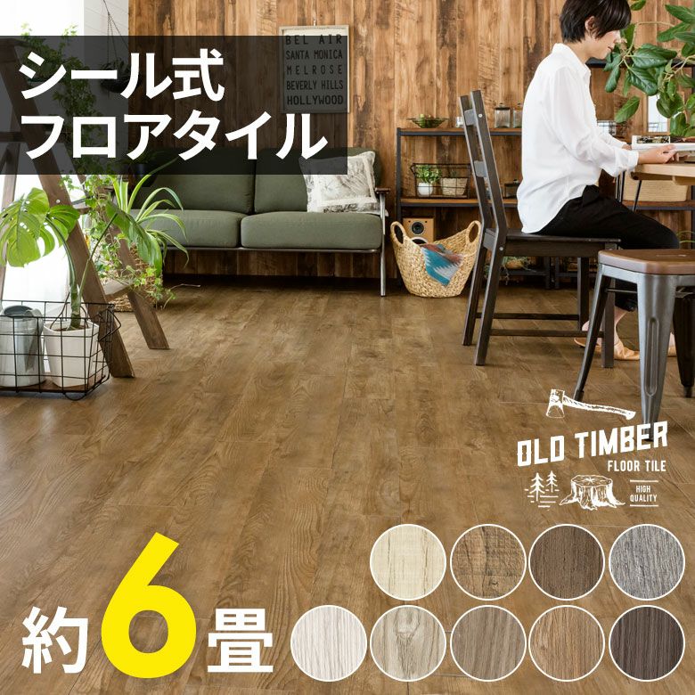 ペタッと貼るだけ、ヴィンテージテイストのフロアタイル。 木目調フロアタイル 接着剤付き 床材 貼るだけフローリングタイル12枚セット[接着タイプ オールドティンバー全9色] diy ウッドカーペット シート シール タイル フロアマット フロアタイル フロアーマット フローリング マット 床 接着剤不要