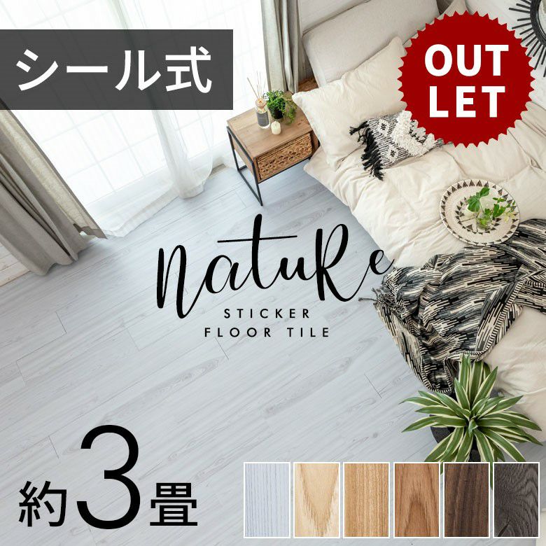 ☆アウトレット! 【訳あり】フロアタイル 接着剤付き 床材 貼るだけ シール 72枚 約 6畳 ブラウン ベージュ グレー ホワイト [out-84075]【 nature ナチュール 接着 粘着 木目調 フローリング タイル マット カーペット 床 シート フロア ナチュラル シック 接着剤不要 北欧 おしゃれ リゾート 】