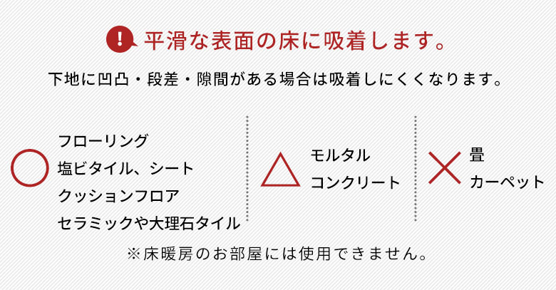 裏面の滑り止めが、フローリングなどの平坦な面にピタっと吸着!