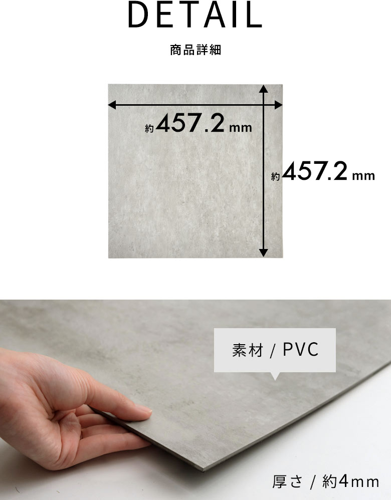1枚あたり 約 W 45.72 × D 45.72 × H 0.4cm