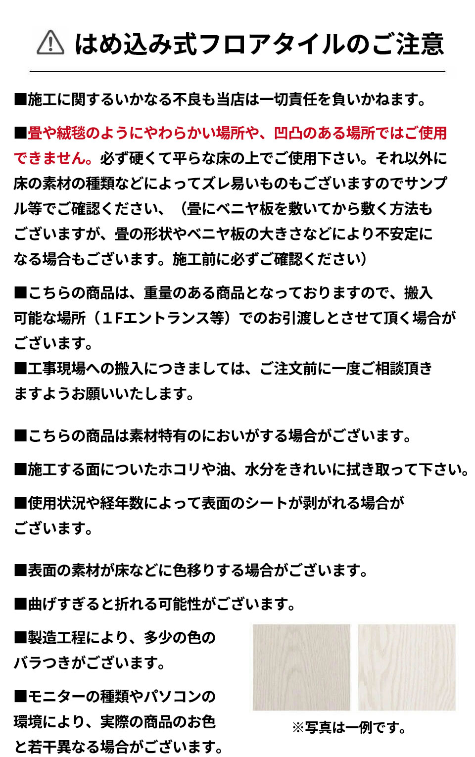 ご使用環境により、敷き込み場所の床やワックス等の薬剤と