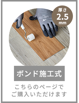 ただし、接着不良がある場合、突き上げが起きたり隙間が発生する可能性があります。ローラーでの圧着が不十分であったり、ボンドの接着可能時間を経過して施工すると、接着不良の原因となるためご注意ください。