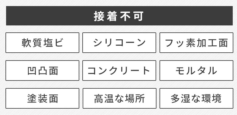 ※プリント合板、塗装面、壁紙や表面がもろくなっている場所などは、剥がしたときに表面を傷付けることがあります。