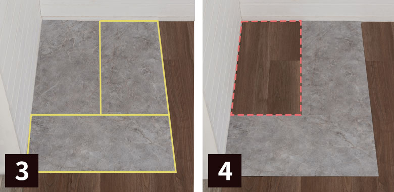 貼りたいフロアタイルの周りを、ガイド用に他のフロアタイルで囲みます。 |