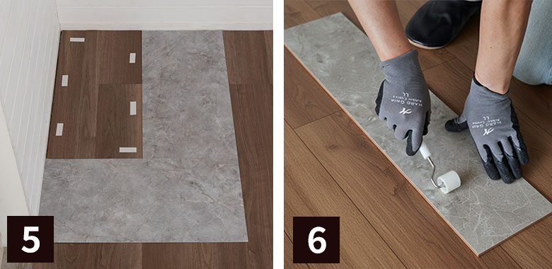 テープを貼った上にタイルを元の位置に戻します。※ローラーで圧着するとより安定します |