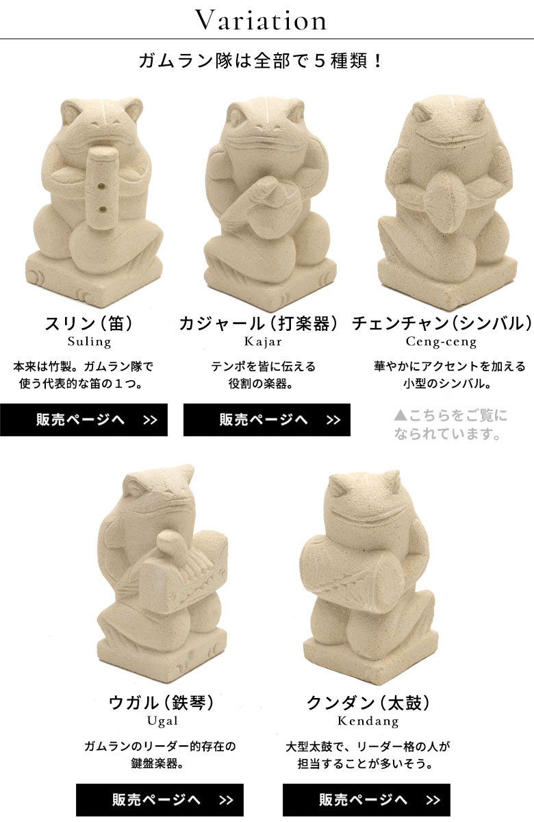 音は出ませんが、白い独特の質感のパラス石+カエル+ガムラン隊という、