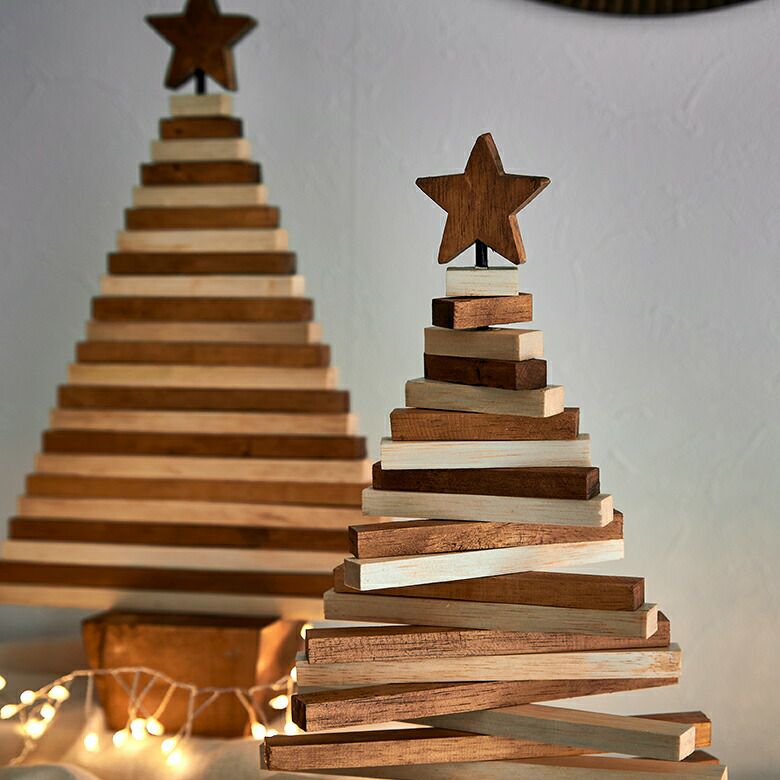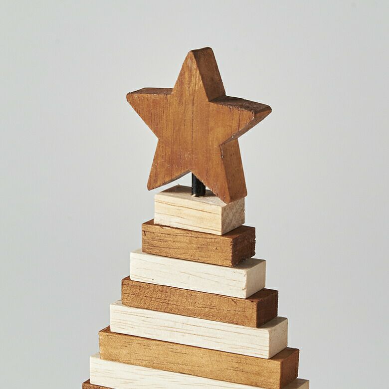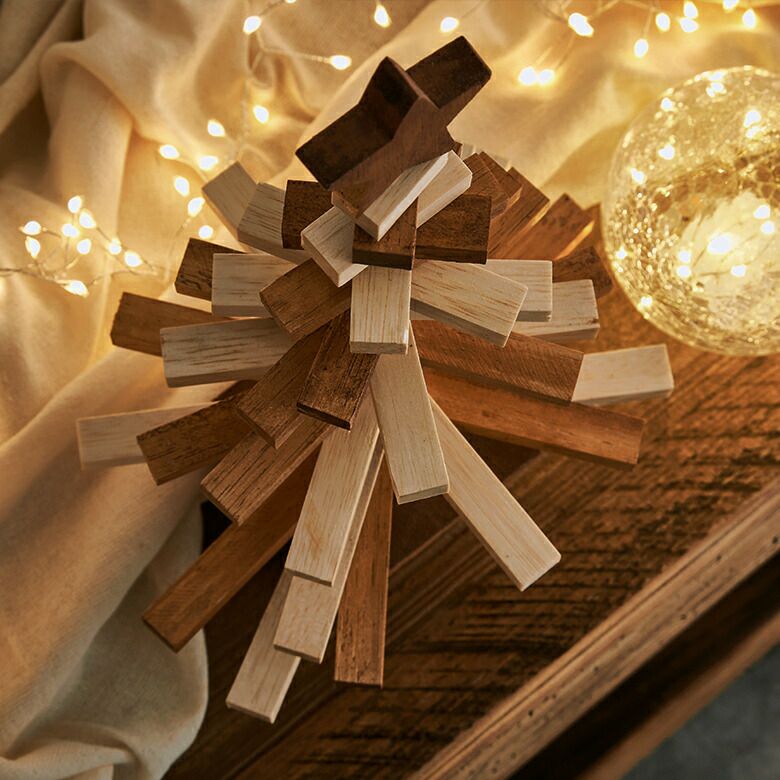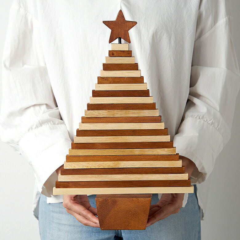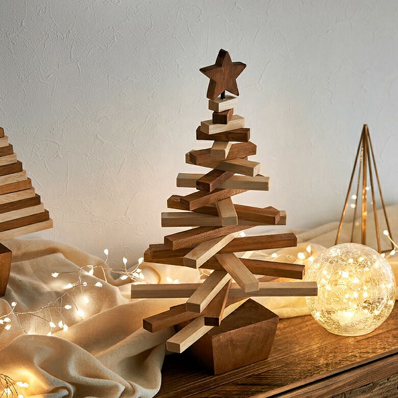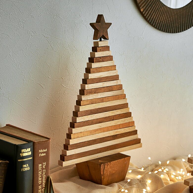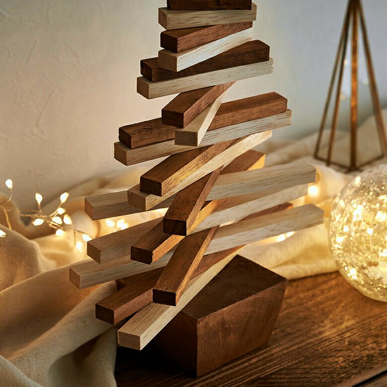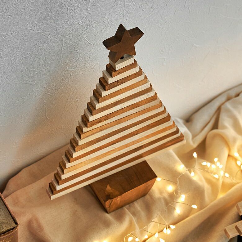 ウッドピースを組み合わせた、クリスマスツリーのオブジェ。