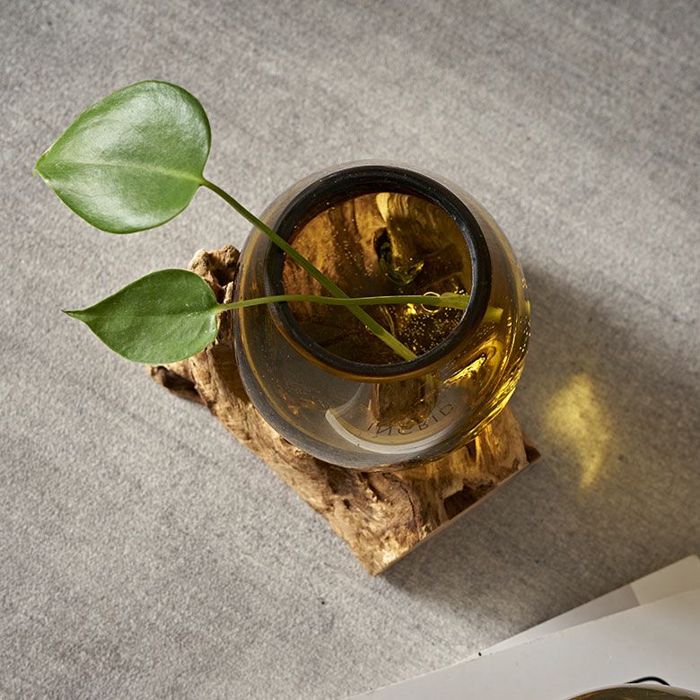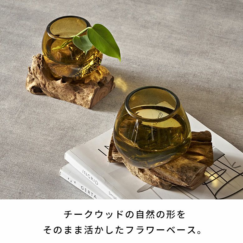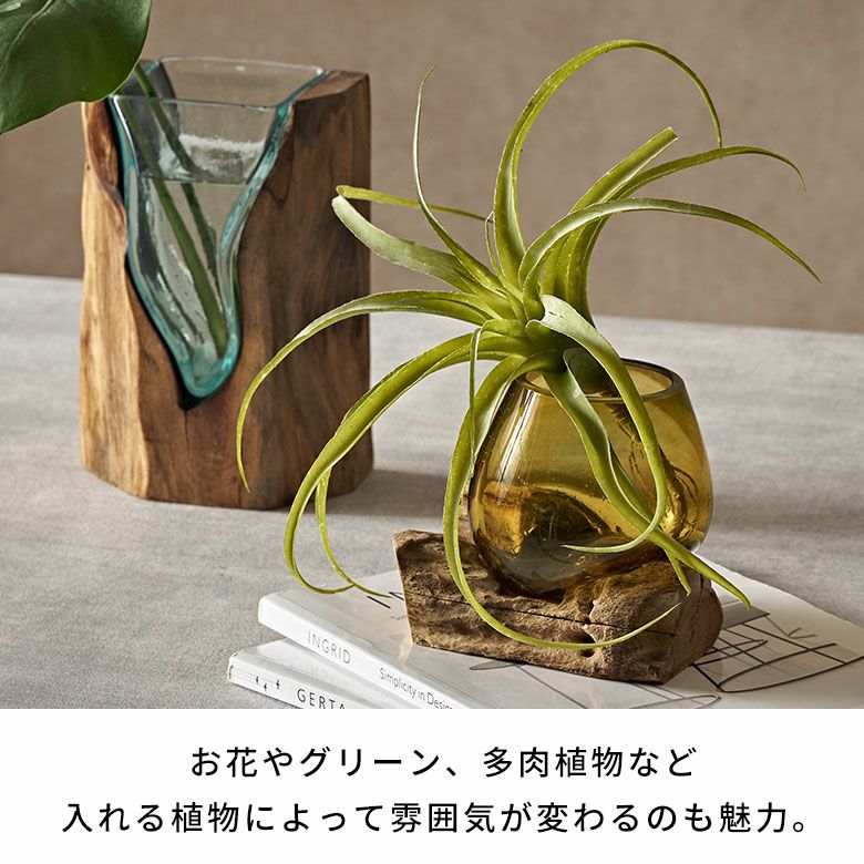 天然素材とガラスを組み合わせた個性的なフラワーベース。