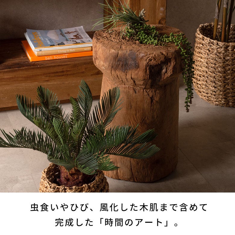 一点ごとに形や朽ち方が異なる、世界にひとつだけの存在。チーク材ならではの重厚感と耐久性を備えながら、サステナブルな価値観にも寄り添う、存在そのものを楽しむインテリアです。