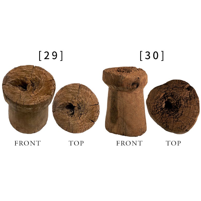 微生物や湿度、時間の流れによって刻まれた虫食いやひび、風化した木肌。荒々しくも美しいその表情は、人工的な加工では決して生まれません。道具としての歴史と自然の造形が重なり合い、ヴィンテージやアンティークとも異なる「時間のアート」としての存在感を宿します。