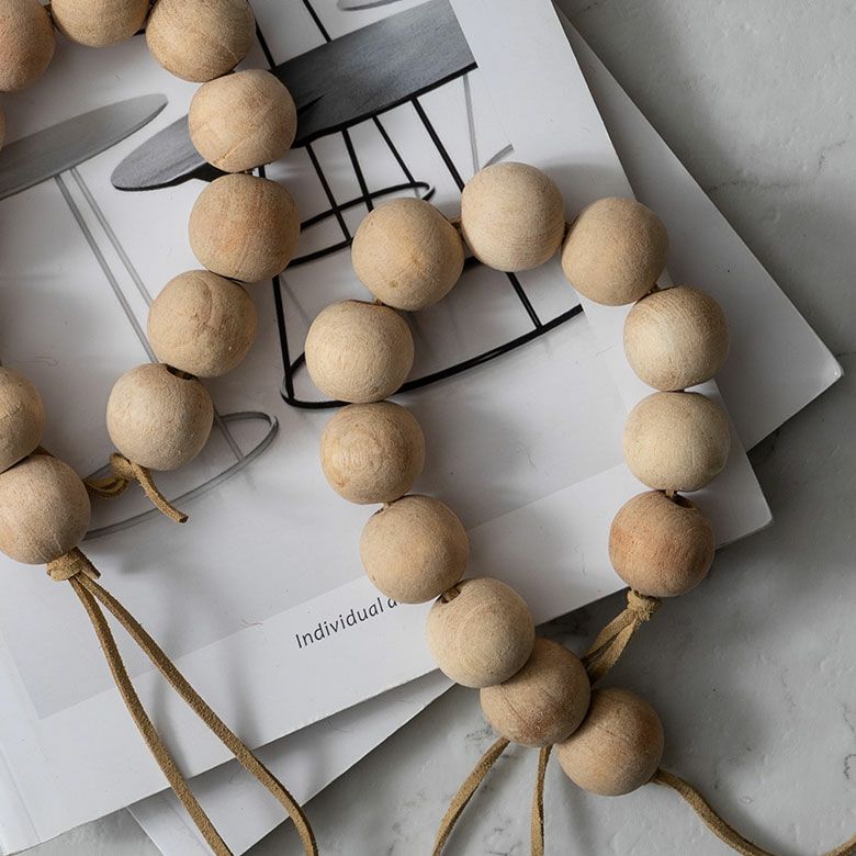 ころころとした大きめのウッドビーズがお部屋に個性を放つカーテンタッセル。