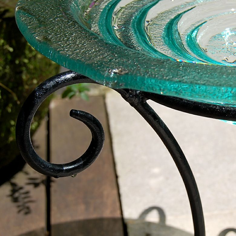 ガラスの水盤を支えるアイアンスタンド。