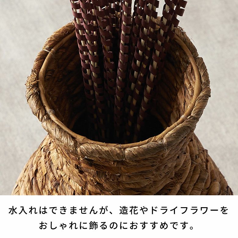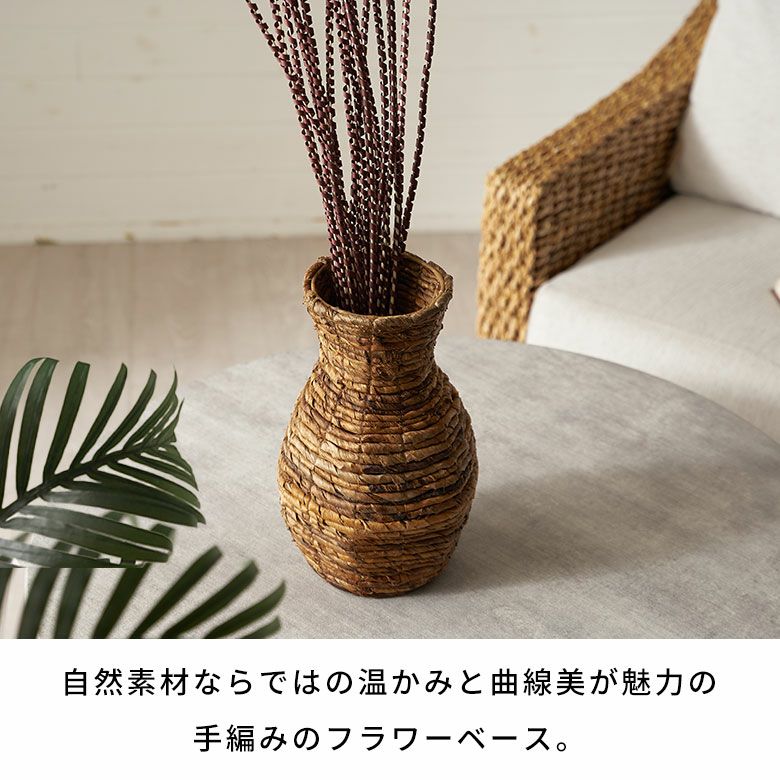 自然素材ならではの温かみとすっきりとした無駄のないフォルムが魅力のフラワーベース 花瓶 おしゃれ フラワーベース 自然素材 バナナリーフ ドライフラワー 花瓶 造花 枝もの アートプランツ フェイク グリーン 花器 枝 ボトル型 W16×D16×H42cm ナチュラル リゾート アジアン バリ 雑貨 インテリア 南国 トロピカル バリ島のアジアンフラワーベース [14186]