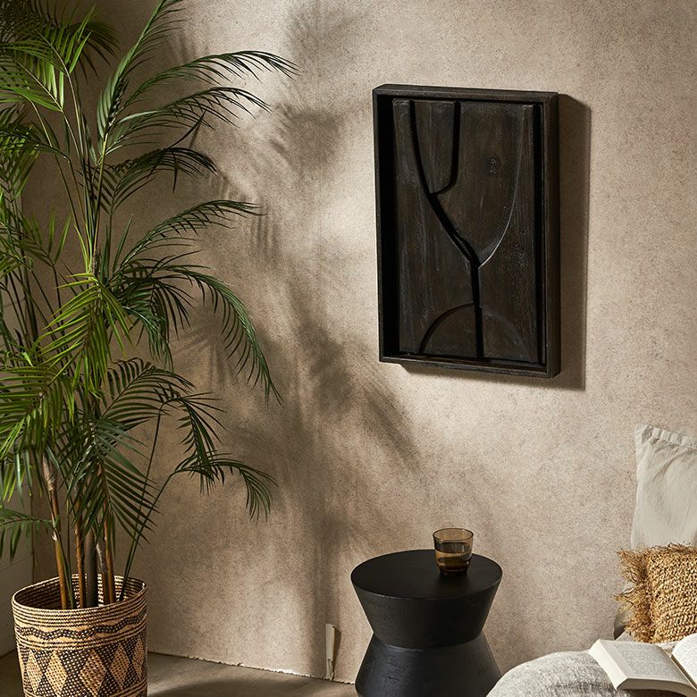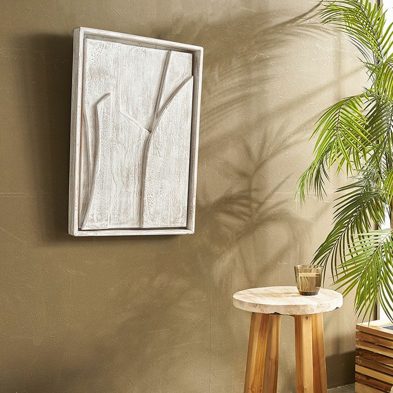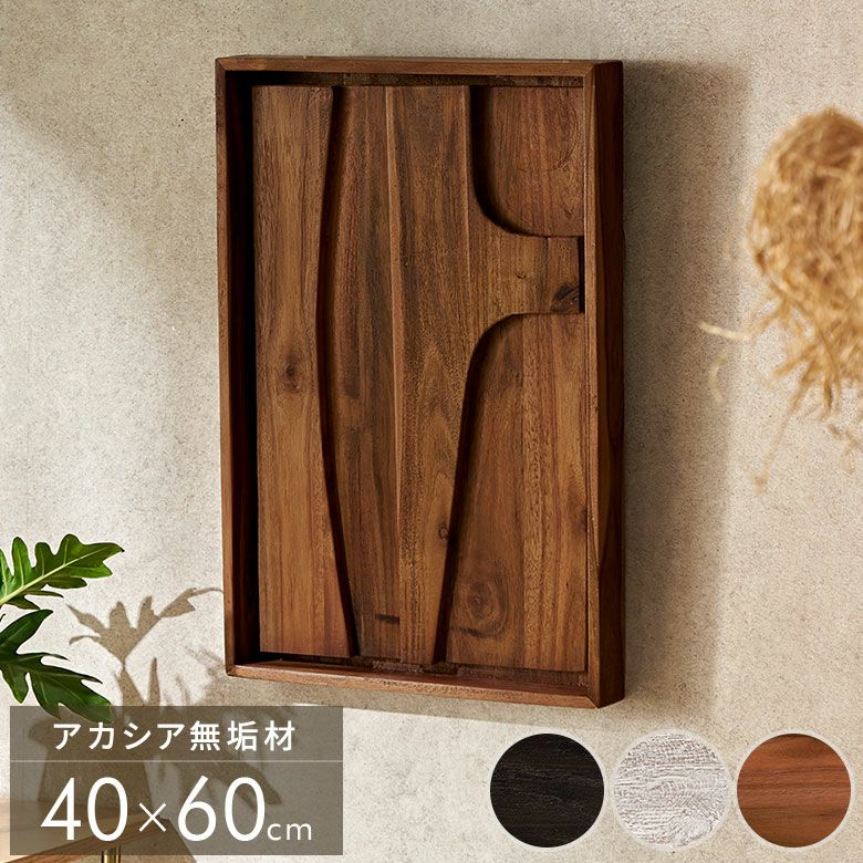 ブラック、ホワイトウォッシュ、アンティークブラウンの3カラー・3デザイン展開。裏面には金具が4か所ついており、縦横どちらでも自由なレイアウトで壁掛け可能。リビングやオフィス、カフェの壁面装飾はもちろん、壁に立て掛けて飾るのもおすすめです。天然木材ならではの高級感とナチュラルな温もりを兼ね揃えた、サステナブルなウォールデコレーションです。