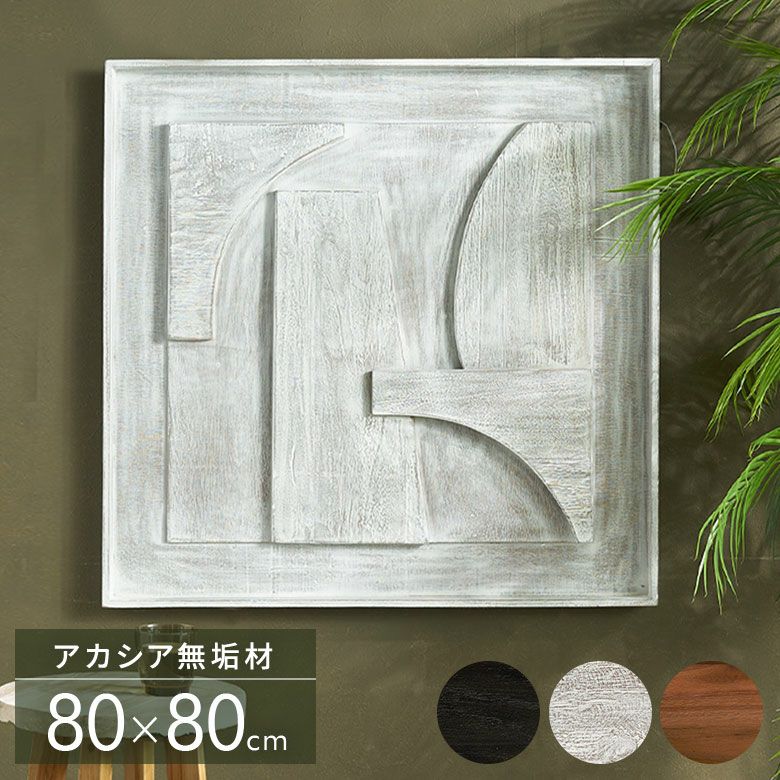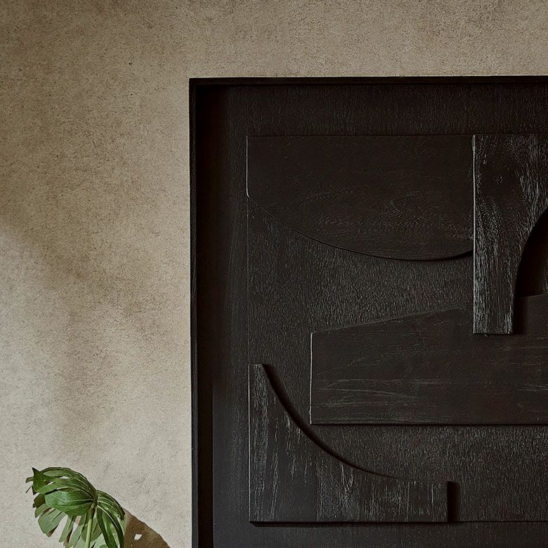 ブラック、ホワイトウォッシュ、アンティークブラウンの3カラー・3デザイン展開。裏面には金具が4か所ついており、縦横どちらの向きでも自由にレイアウトして壁掛け可能。リビングやオフィス、カフェの壁面装飾はもちろん、壁に立て掛けて飾るのもおすすめです。天然木材ならではの高級感とナチュラルな温もりを兼ね備えた、サステナブルなウォールデコレーションです。