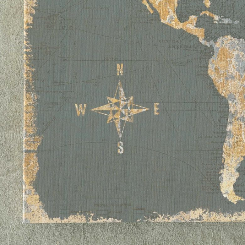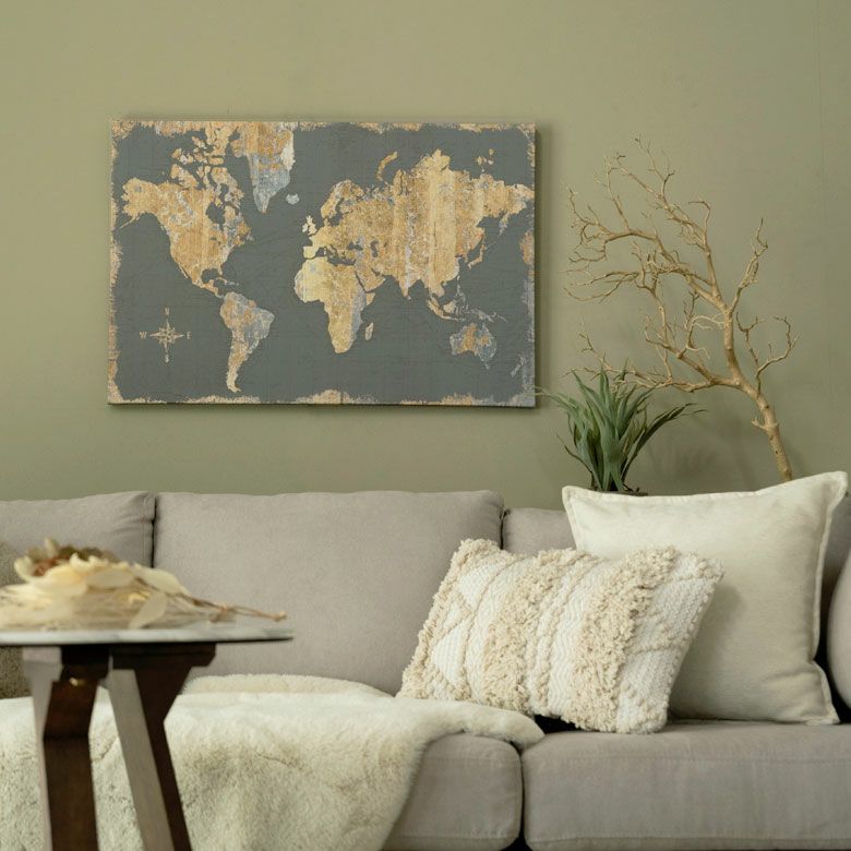 レトロ感が漂いながらもクラシカルな存在感が共存する、世界地図デザインのアート。