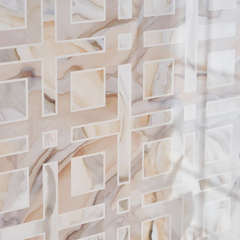 水彩画タッチのベースに描かれた、グラフィカルな模様が作るモダンなデザイン。
