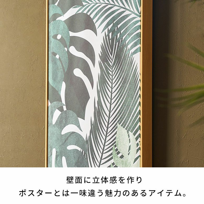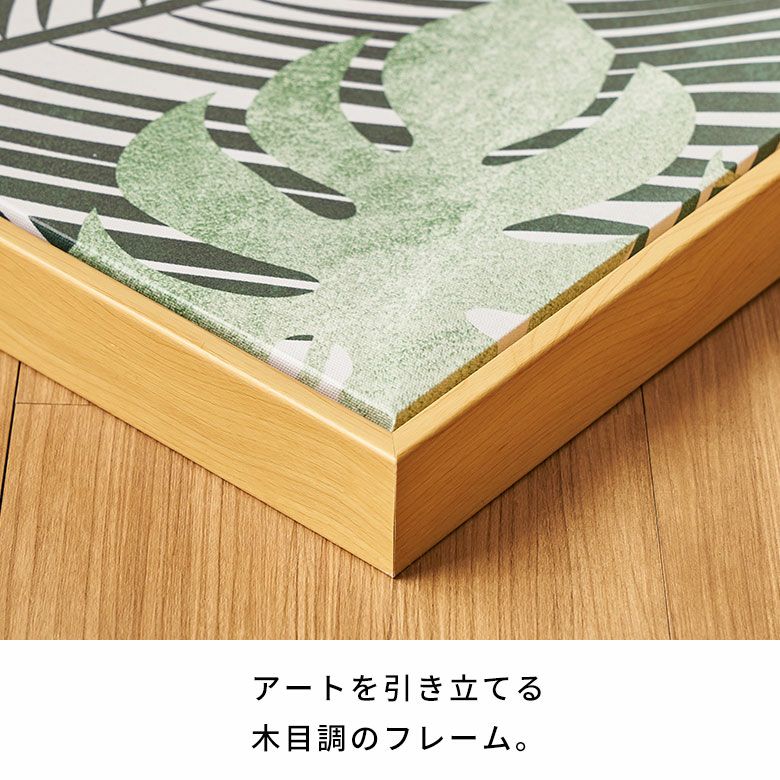 木目調のフレームが、デザインを引き立てつつ壁面に立体感を作り