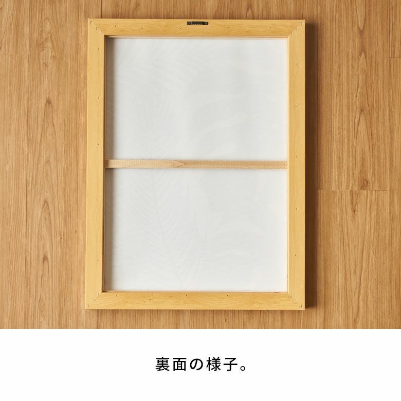 裏面にある壁掛け用の金具に、ピンフックなどを使って簡単に飾れる軽量さもポイント。