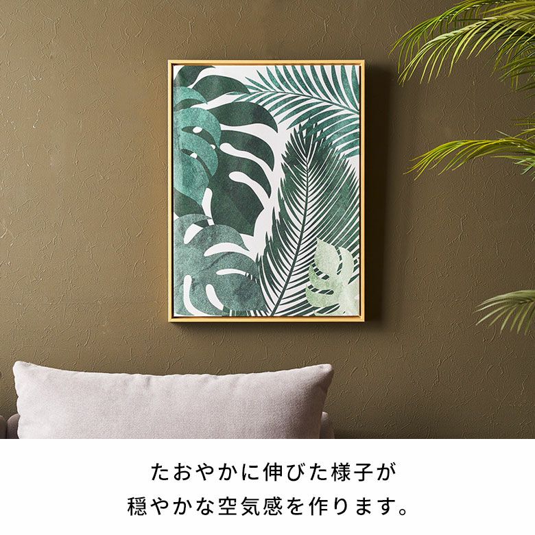 1枚ずつ大きく描かれた葉は、自然の雄大さを感じさせるよう。