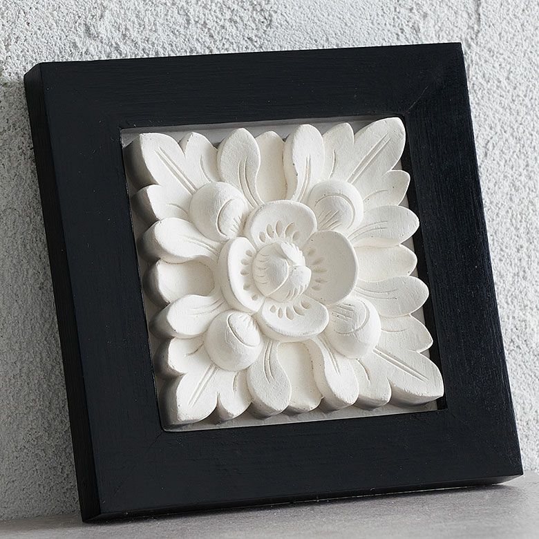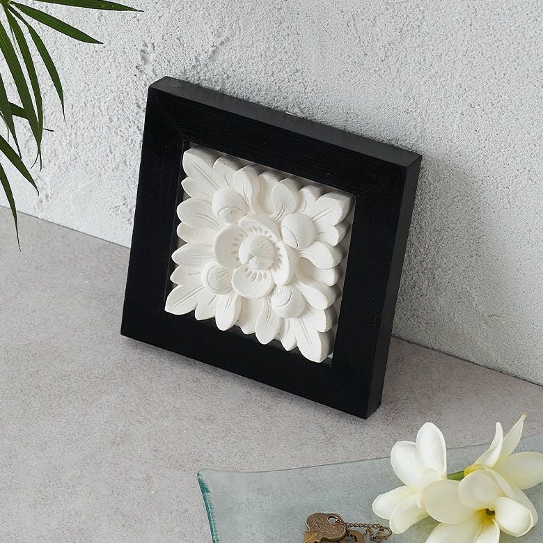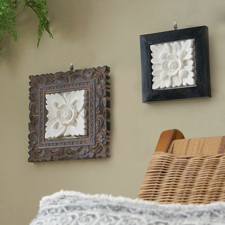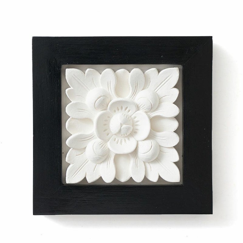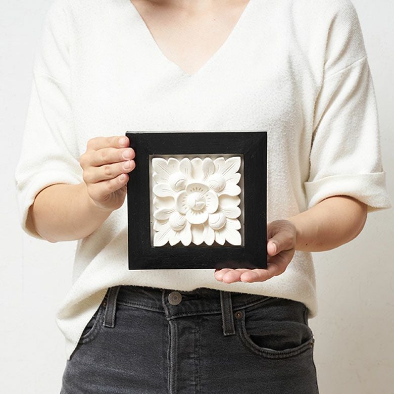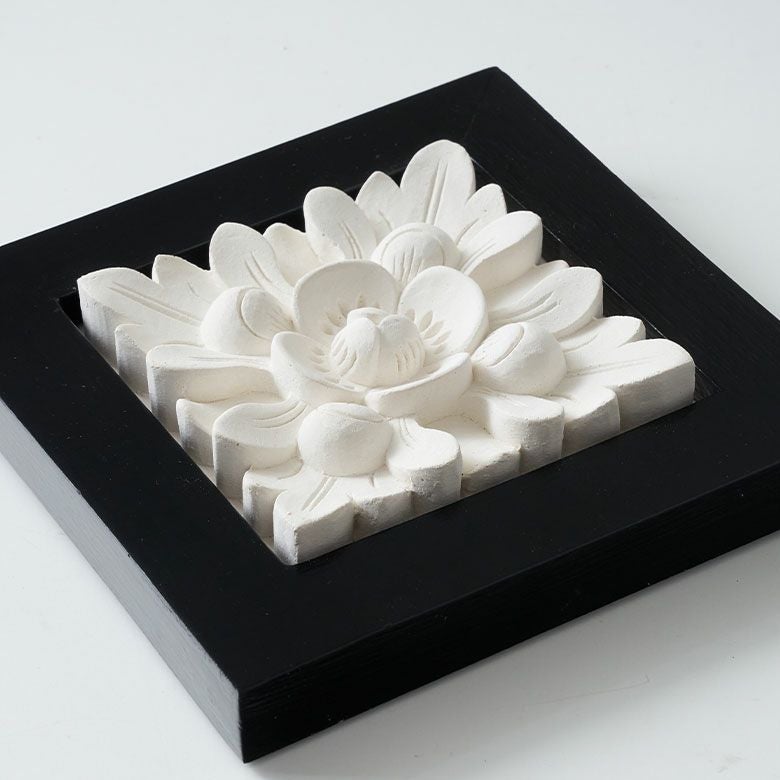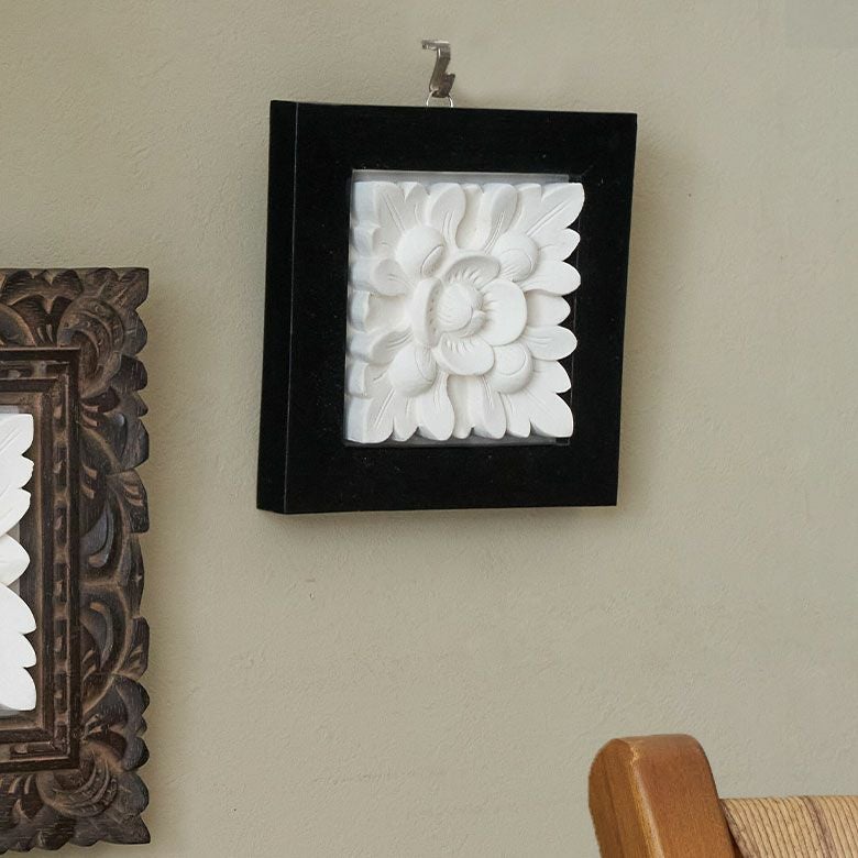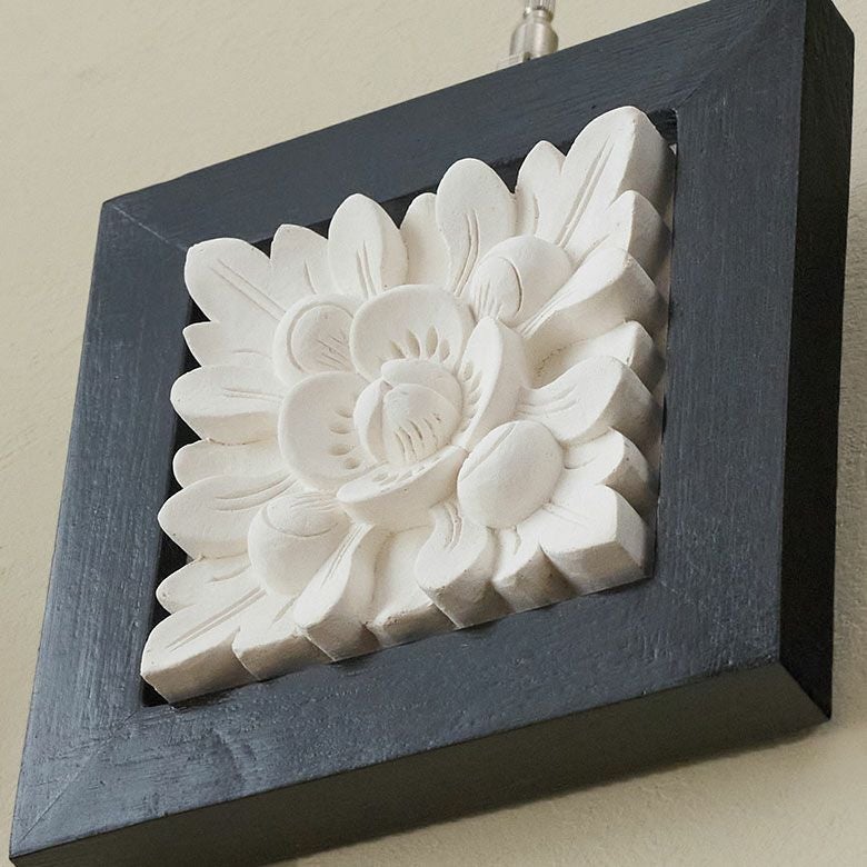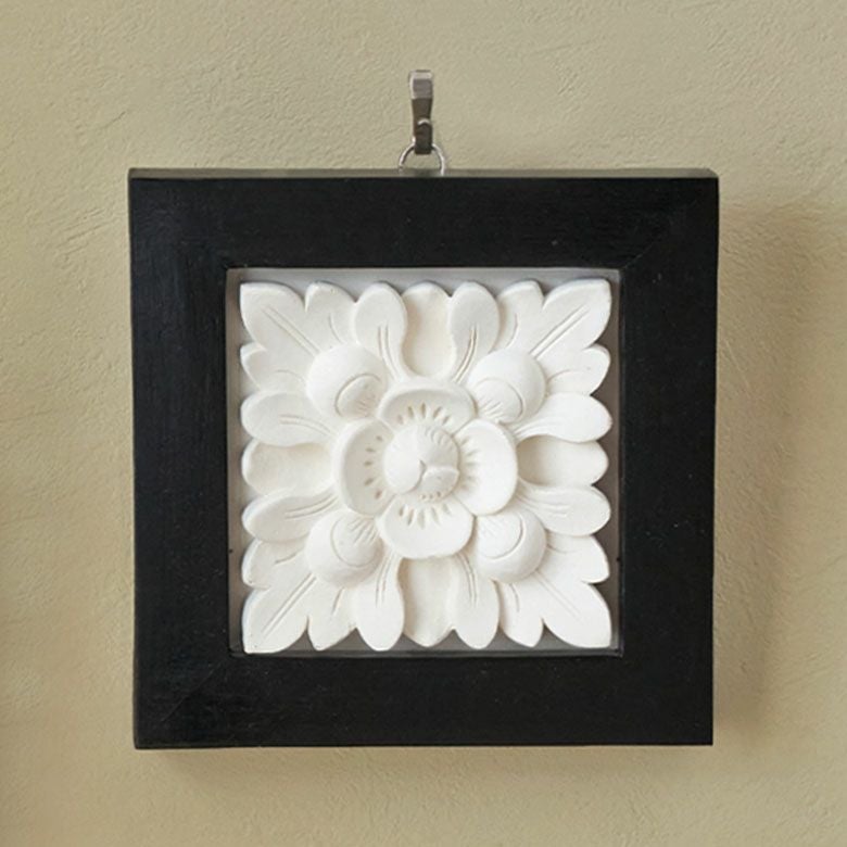 ・バリ島の職人が手作りしたブラックフレームのストーンレリーフ