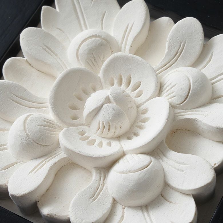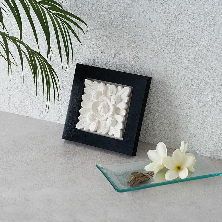 ・立体的なお花のモチーフが彫られたデザインで、アジアンリゾートの雰囲気を演出