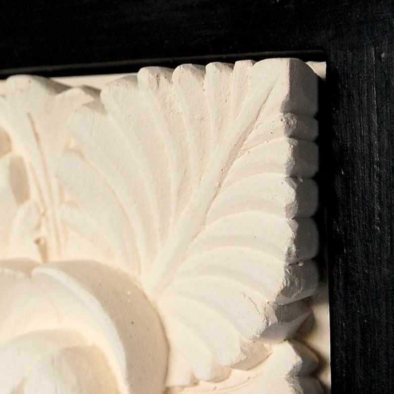 ・ブラックフレームに囲まれたホワイトストーンの彫刻は、エキゾチックでオリエンタルな魅力を持ち、どんなインテリアにもマッチ