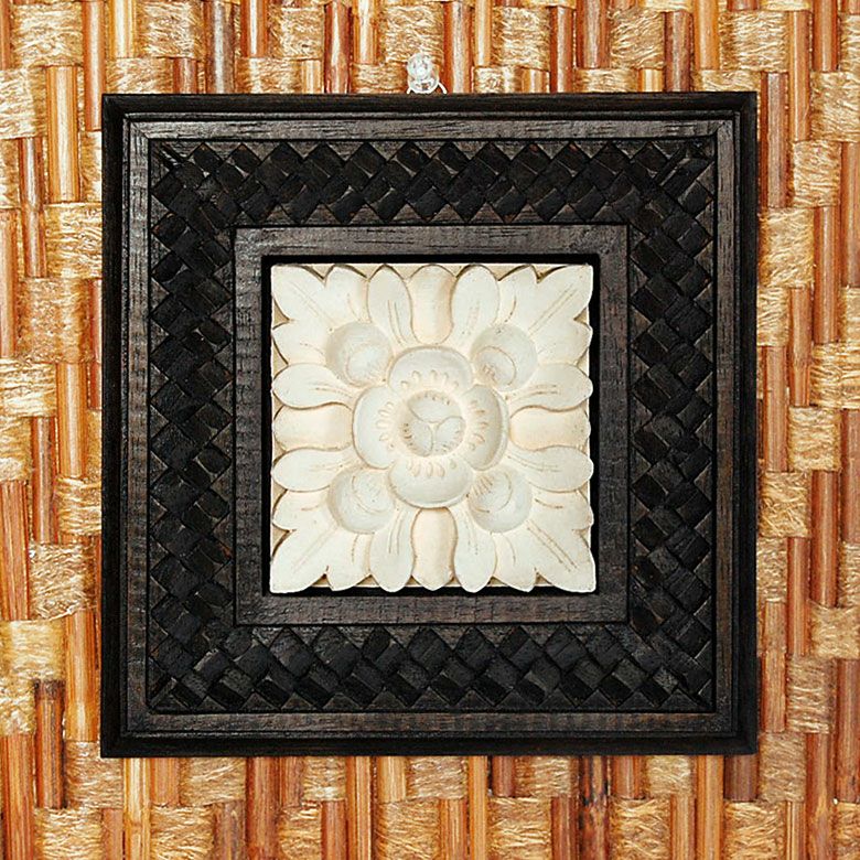 立体的な木製フレームとアジアンフラワーのモダンレリーフ