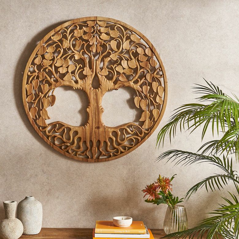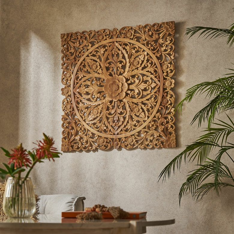 インドネシア・バリ島の熟練職人が、丁寧に彫り上げて仕上げた木製レリーフ。