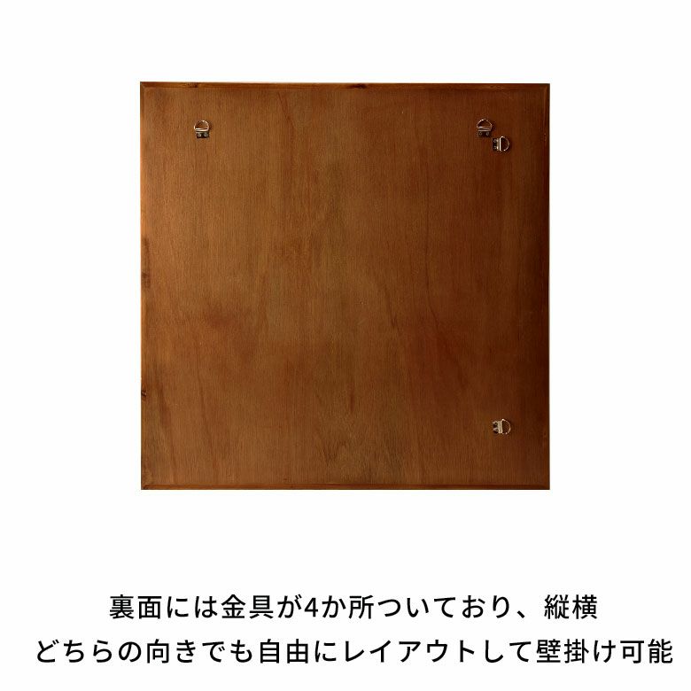 ブラック、ホワイトウォッシュ、アンティークブラウンの3カラー・3デザイン展開。裏面には金具が4か所ついており、縦横どちらの向きでも自由にレイアウトして壁掛け可能。リビングやオフィス、カフェの壁面装飾はもちろん、壁に立て掛けて飾るのもおすすめです。天然木材ならではの高級感とナチュラルな温もりを兼ね備えた、サステナブルなウォールデコレーションです。