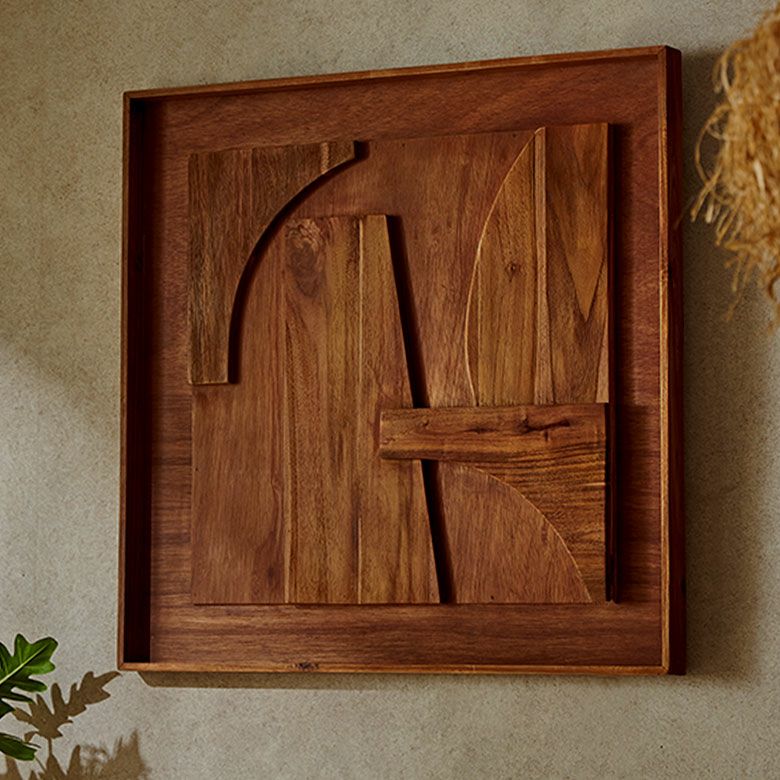 無垢のアカシアウッドを使用した、重量感ある佇まいの3Dウッドウォールアート。複雑な模様や細かい彫刻を施すのが難しい密度の高いアカシア無垢材を、インドネシアの熟練職人がひとつひとつ手作業で仕上げた逸品です。形の違うウッドピースを丁寧に組み合わせた、立体的でトレンド感あるアブストラクトデザインが、ワンランク上のホテルライクな雰囲気を演出します。光の角度によって、表情が変わる美しい陰影をお楽しみください。