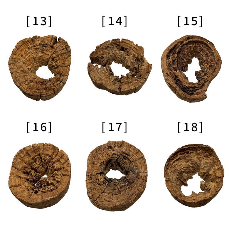 形や朽ち方、穴の開き方まで一つひとつ異なる一点もの。同じ表情は二つと存在しません。