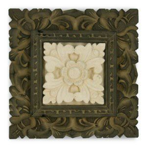 パラスストーンと呼ばれるインドネシア産の白い砂岩を彫って作られたアジアンレリーフに木彫りのフレームを組み合わせたアジアンアート。木彫りフレームは砥粉を塗って拭き上げることで彫刻の溝に砥粉が入り込み立体感とアンティーク感をアップさせています。 キャンバスの絵と異なり立体感のある彫刻なので光の加減によって少しずつ表情が変わって見えるのも楽しいアートです。20cm四方の小さくて扱いやすいサイズで裏に壁掛け用のフックも付いていますのでリビングはもちろん、廊下やパウダールームなどにも気軽に飾ることができます。