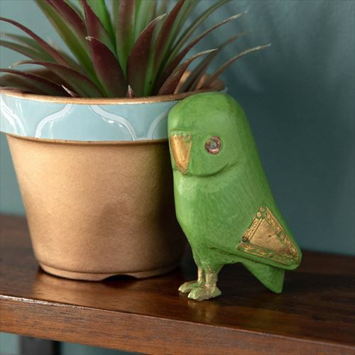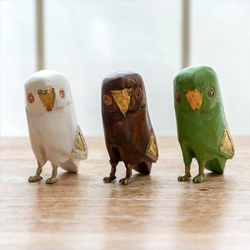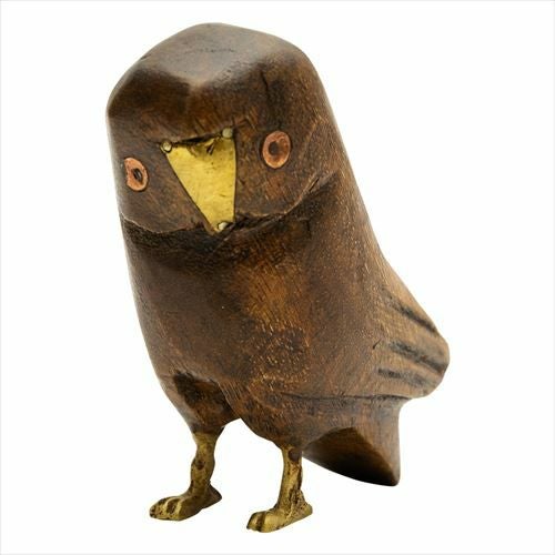 ふくろう 置物 縁起物 幸運の鳥 フクロウ スモール オブジェ ふくろう ウッド 真鍮 [94220-br 94220-iv 94220-gr]【 高さ8.5cm ラッキーモチーフ 幸福 ブラウン アイボリー グリーン おしゃれ インテリア 玄関 】