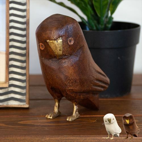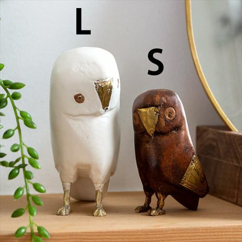 ふくろう 置物 縁起物 幸運の鳥 フクロウ ラージ オブジェ ふくろう ウッド 真鍮 [94221-br 94221-iv]【 高さ10.5cm ラッキーモチーフ 幸福 ブラウン アイボリー おしゃれ インテリア 玄関 】