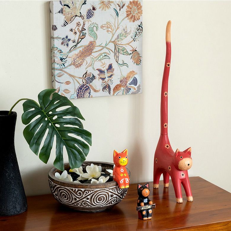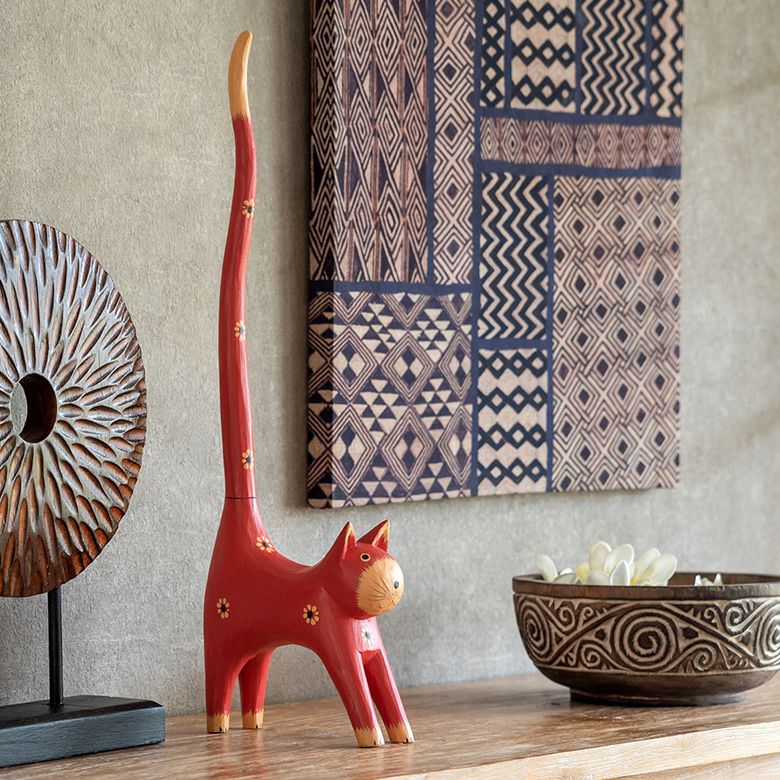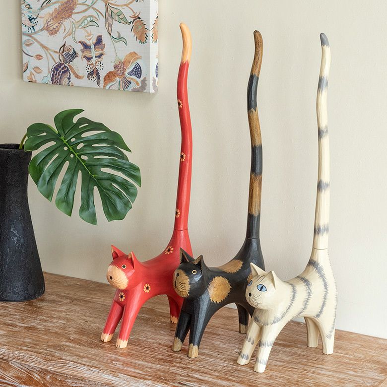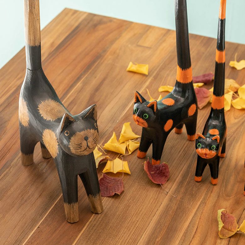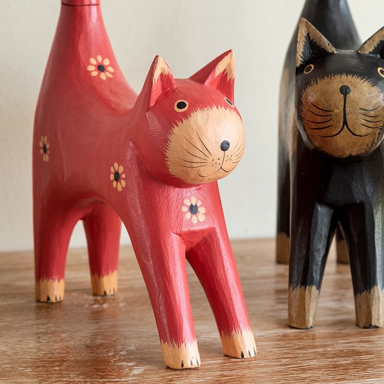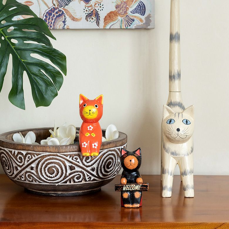 バリ島の定番と言っても良いバリネコの木彫りオブジェや