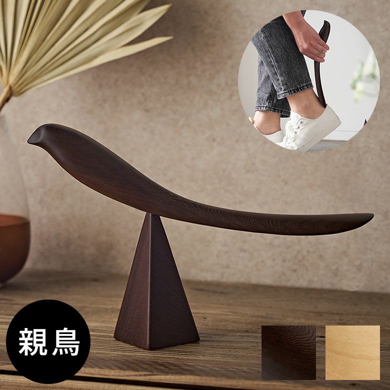 スタンド式 ナチュラル 飾り 置物 置き物 アート シューズ 靴 カフェ 店舗 室内 屋内 コーディネート デコレーション 可愛い カワイイ シンプル モダン ハンドメイド ギフト プレゼント 靴べら シューホーン 親鳥 木製 天然木 ウッド 鉄刀木 タガヤサン ビルマツゲ 約 W 28cm D 5cm H 18cm ブラウン ベージュ スタンド 付き バードオブジェ オブジェ 靴ベラ くつべら 鳥 バード かわいい 玄関 インテリア おしゃれ 北欧 リゾート 雑貨 アジアン [94196]