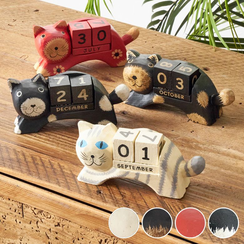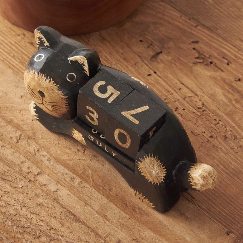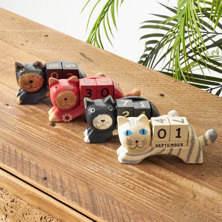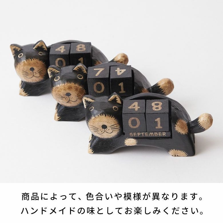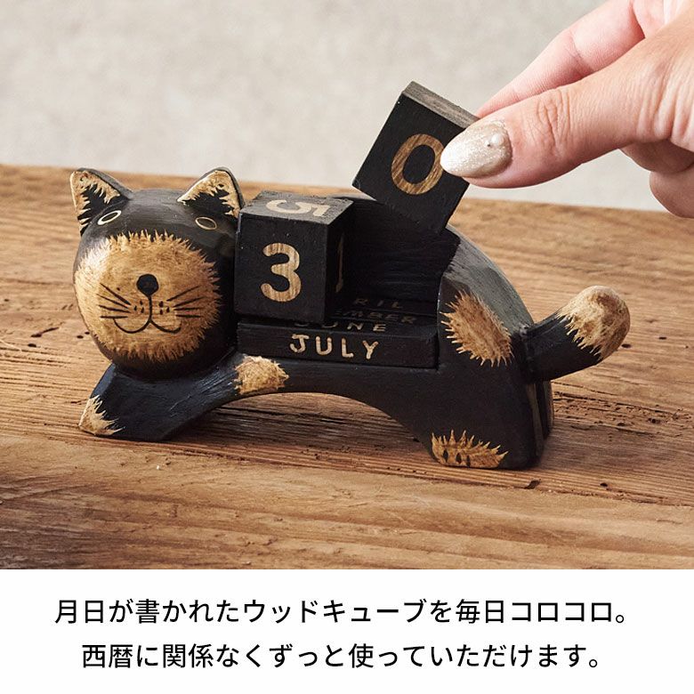 ほのぼのとした癒し度バツグン!木彫りのネコのおとぼけ顔がチャームポイント。大人気バリネコシリーズ。 万年カレンダー アジアン雑貨 猫 インドネシア バリ猫 置物 かわいい おしゃれ アジアン バリ 雑貨 木 カレンダー ブロック 木製 オブジェ 動物 卓上 日めくり W14×D4.5×H7 ウッド 北欧 インテリア リゾート バリ島のアジアンウッドカレンダー アジアンインテリア [14131]