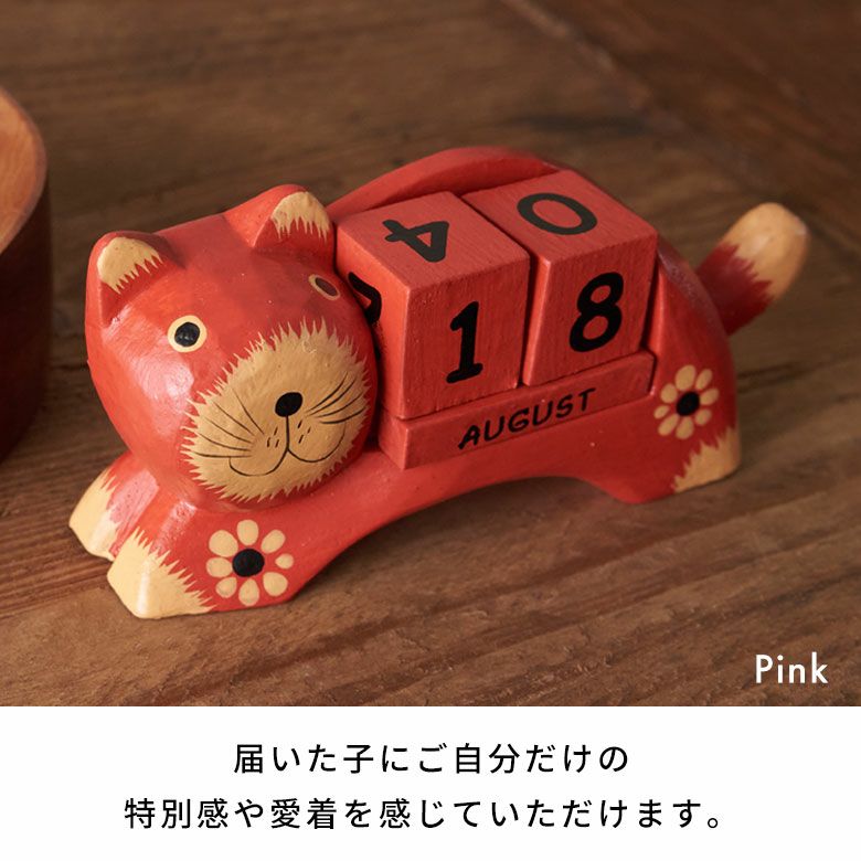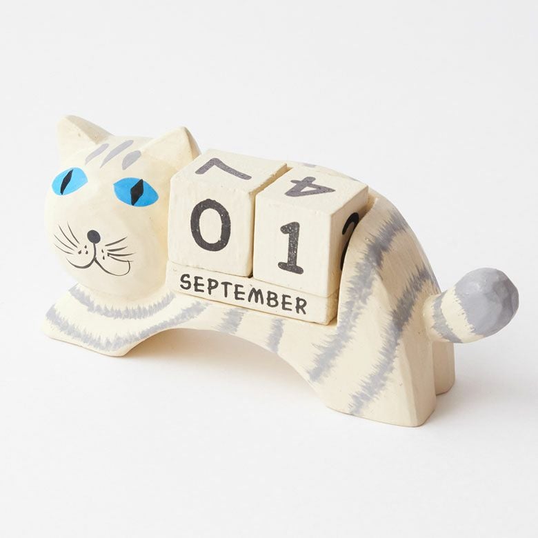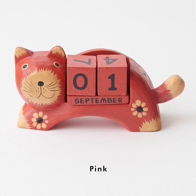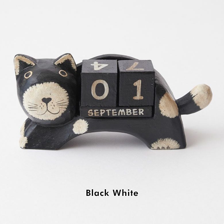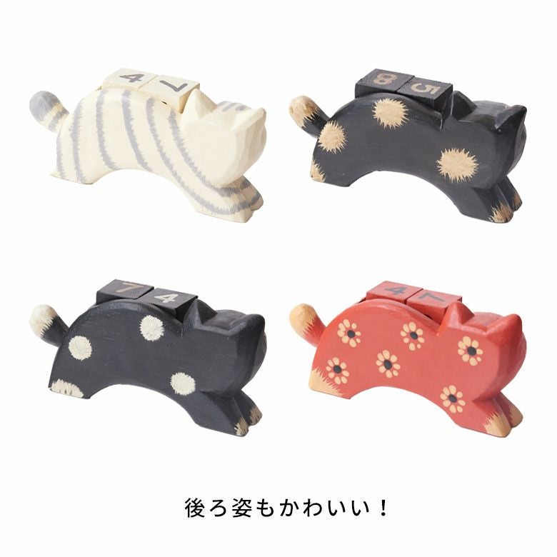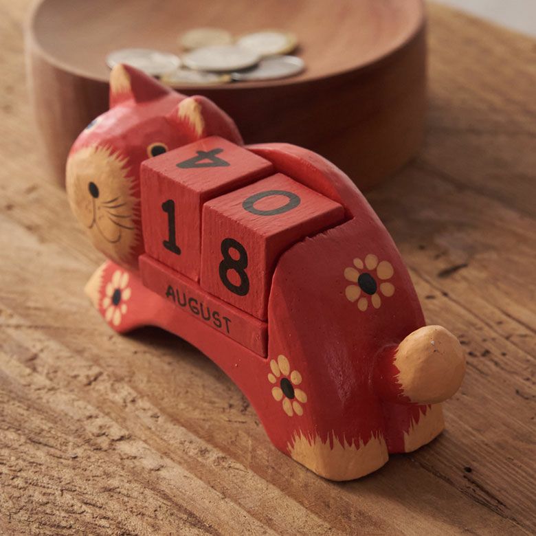 ほのぼのとした癒し度バツグン!木彫りのネコのおとぼけ顔がチャームポイント。大人気バリネコシリーズ。 万年カレンダー アジアン雑貨 猫 インドネシア バリ猫 置物 かわいい おしゃれ アジアン バリ 雑貨 木 カレンダー ブロック 木製 オブジェ 動物 卓上 日めくり W14×D4.5×H7 ウッド 北欧 インテリア リゾート バリ島のアジアンウッドカレンダー アジアンインテリア [14131]
