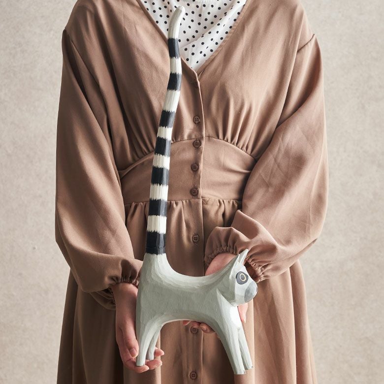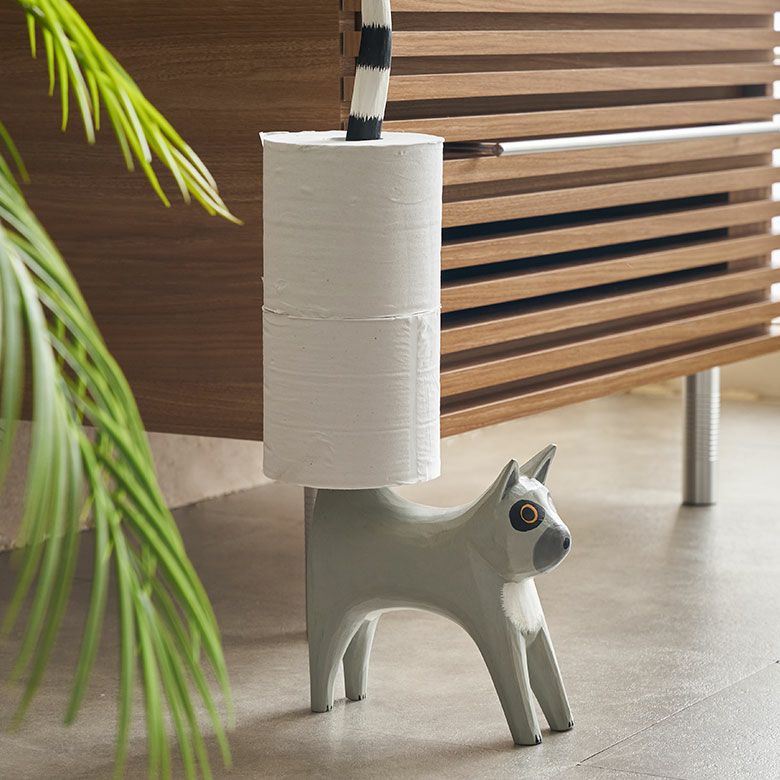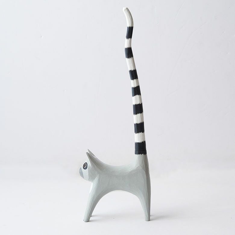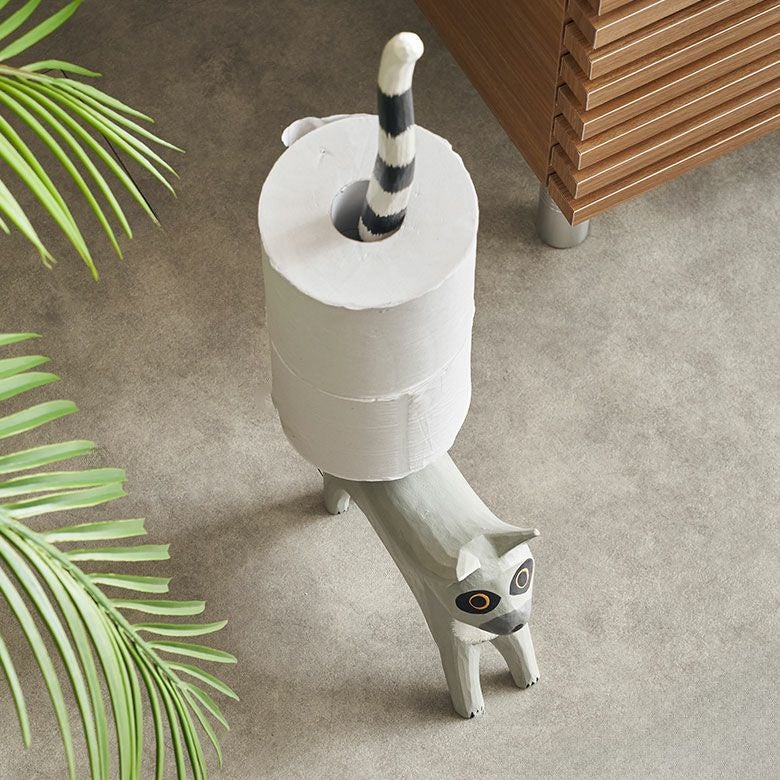 天然素材アルベシアウッドを使用したワオキツネザルのトイレットペーパーホルダー トイレットペーパーホルダー ワオキツネザル 置物 天然木 木彫り オブジェ ハンドメイド トイレ ペーパー ホルダー 収納 ストッカー 玄関 ディスプレイ 置き物 おしゃれ アジアン バリ 雑貨 リゾート インテリア バリ島 バリ島のアジアントイレットペーパーホルダー [14132]